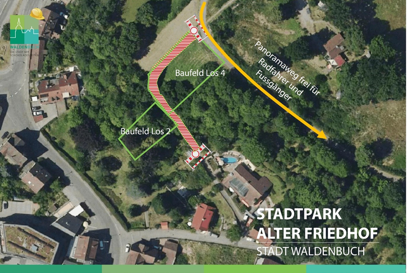 Der Durchgang am Panoramaweg für Fußgänger oder Radfahrer ist hingegen weiterhin möglich und ist mit einem Bauzaun gesichert.