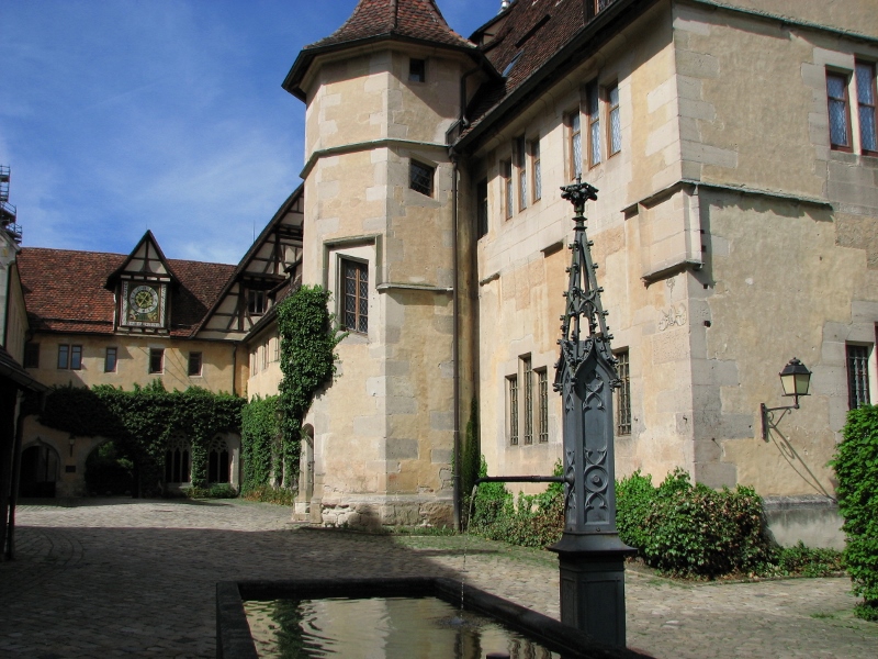 Bebenhausen und sein Zisterzienzer Kloster sind eine eigene Besichtigung wert! Der ganze Ort steht unter Denkmalschutz. Nach dem Aussteigen gehen wir ein Stück zurück, überqueren am Fußgängerüberweg die Landstraße L 1208 (Waldenbuch - Tübingen) und gehen sofort den Forstweg (Spötterweg) mit dem Wanderzeichen roter Strich (Hauptwanderweg Nr. 3 = HW3) aufwärts. Wir wandern ein langes Stück auf einem Waldlehrpfad und finden links den mannshohen Felskegel, "König Wilhelm Stein" von 1916 (Kleindenkmal). Wir bleiben auf dem Einsiedler Sträßchen, vorbei am Wanderparkplatz Pfeifferstein, benannt nach dem Jäger Wilhelm Pfeiffer, der am 26. Februar 1822, ermordet wurde. Sein Gedenkstein steht etwas abseits im Wald.
