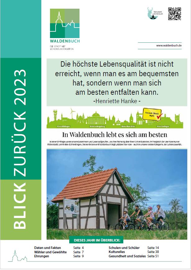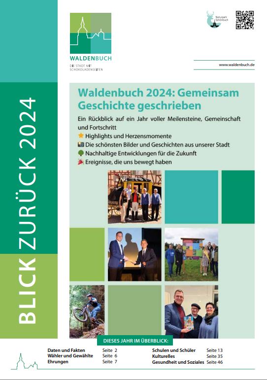 Zahlreiche Jubiläen, Feste und Ereignisse prägen das Leben in Waldenbuch. Der "Blick zurück" erscheint jeweils zu Beginn jedes Jahres und fasst die besonderen Ereignisse des vergangenen Jahres in einem Heft zusammen.